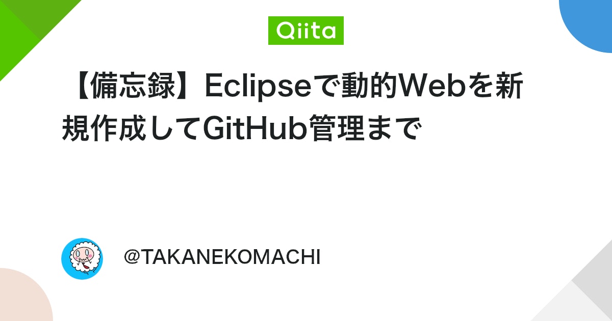 【備忘録】Eclipseで動的Webを新規作成してGitHub管理まで - Qiita